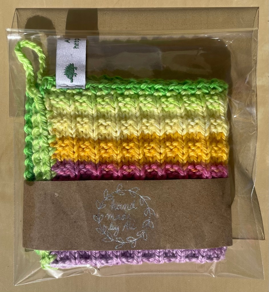 Hand knitted with 100% cotton yarn gives a natural gentle scrub without scratching delicate surfaces.
