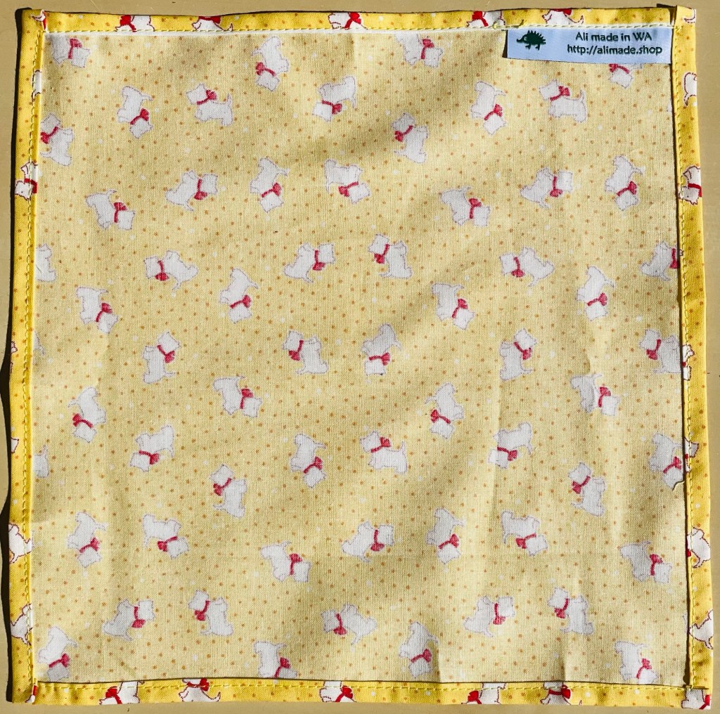 Handmade on sewing machine. 100% cotton materials. Normal machine wash then dry in sunlight to sanitise.
